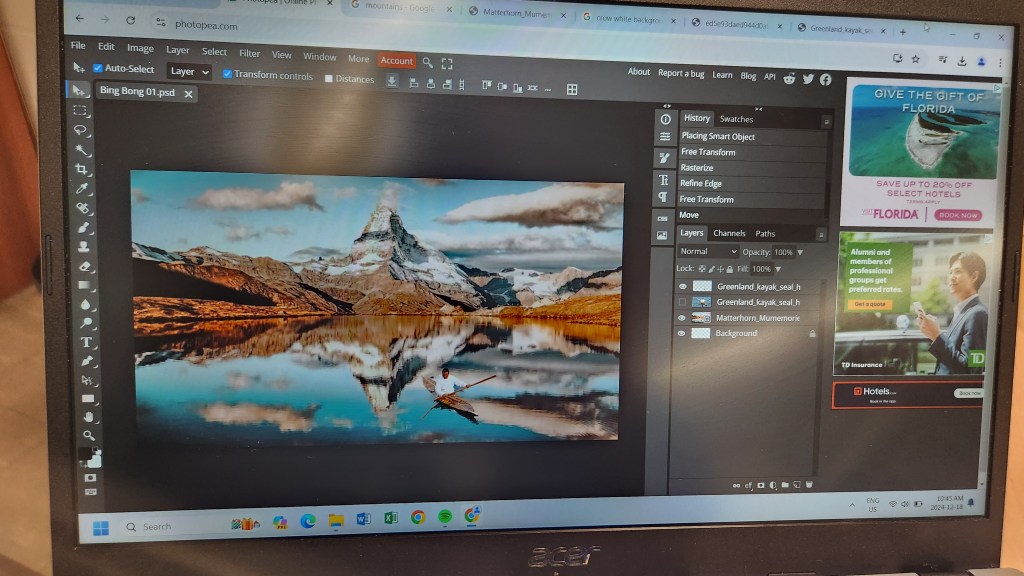 | Today I will: Explore the variety/diversity of 2D media which can be produced with image editing software Investigate tools, technologies, and techniques of digital media production Learn basic image editing skills using Photopea Think about ways I can apply my own interests and research to digital media production | I can: Effectively use online resources to research media production tools, their safety, and how to use them Identify tools and techniques used in image editing Make connections between my own interests and visual media Reflect on how technologies influence the final form of media artworks | Hook: 5 min Episode of You Suck At Photoshop https://www.youtube.com/watch?v=x-8hQh6hdnI&list=PLD19BCF9D57320E03&index=5 Engaging examples of digital art and media Development: Introduction to Photopea Overview of most common/useful tools, what they are used for, and how to use them Practice using Photopea by adding a hammock to a beach scene (or other simple project of students’ choice) Closure: Class reconvenes and discusses what they have learned, and what possibilities there may be to begin new projects of their own |